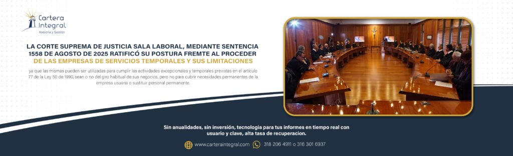 La Corte Suprema de Justicia Sala Laboral, mediante sentencia 1558 de agosto de 2025 ratificó su postura frente al proceder de las empresas de servicios temporales y sus limitaciones, ya que las mismas pueden ser utilizadas para cumplir las actividades excepcionales y temporales previstas en el artículo 77 de la Ley 50 de 1990, sean o no del giro habitual de sus negocios, pero no para cubrir necesidades permanentes de la empresa usuaria o sustituir personal permanente.